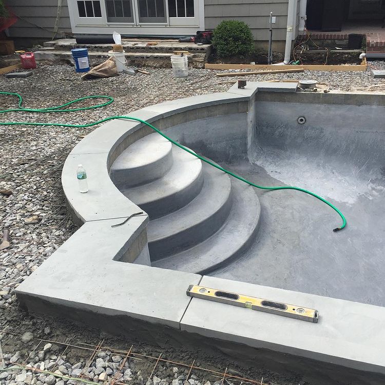 Pool Patio Construction: The design and building of outdoor areas surrounding the pool where people can relax, sunbathe, and entertain. These patios are often made of materials like concrete, stone pavers, or wood decking and are designed to be durable and slip-resistant.