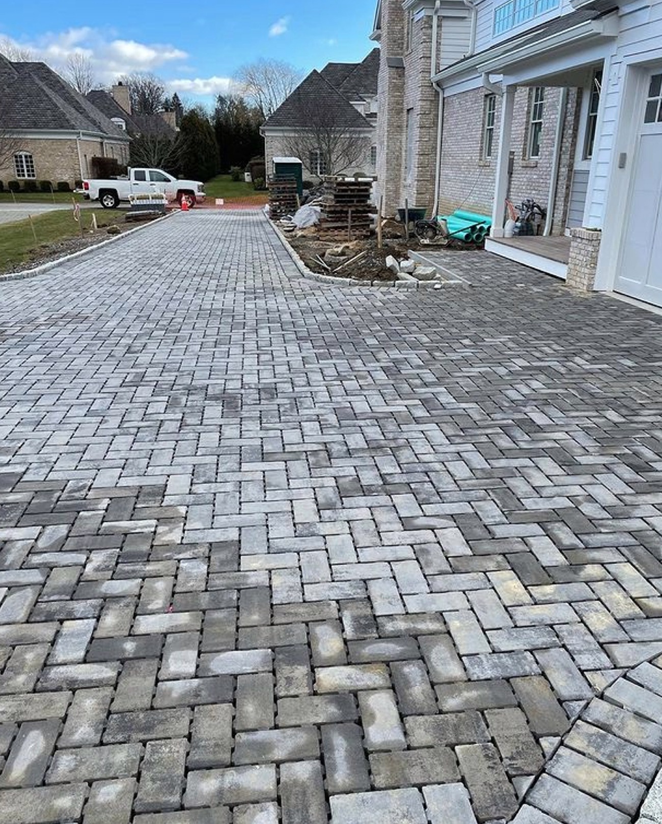 - Installing the pavers in various patterns such as herringbone, basket weave, or running bond.